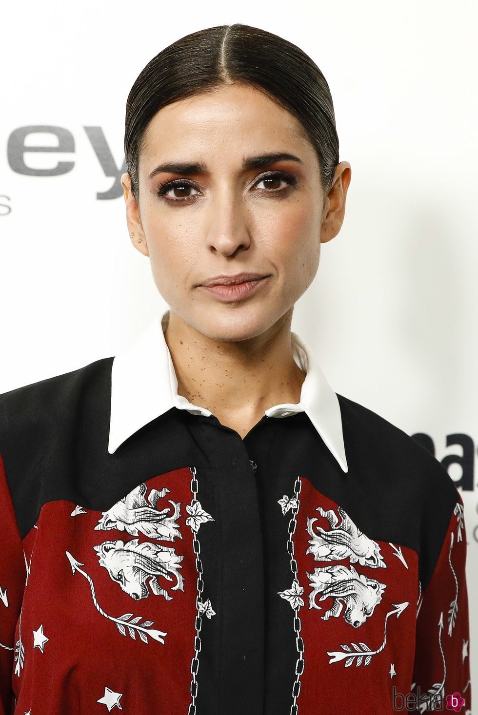 La actriz e influencer de moda Paula Echevarría acude a un evento de Samsung y Tous con una coleta alta con tirabuzones.