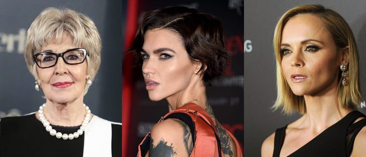 La actriz británica, al contrario que Ruby Rose, se decidió por una melena lisa, partiéndola en un lateral y recogiéndola detrás de la oreja, un peinado que estamos cada vez viendo más en alfombras rojas y que además permite a las celebrities lucir los originales pendientes que suelen llevar, como en este caso. Ricci, que tiene los ojos marrón-verdosos quiso darle protagonismo a la mirada creando un efecto rasgado y con sombras negras creó un grueso rabillo difuminado que no solo conseguía ese efecto rasgado pero daba también profundidad a su mirada.