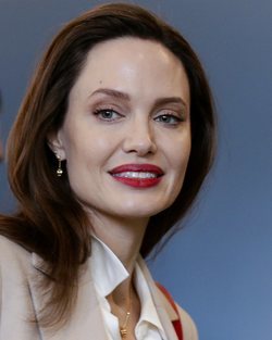 La actriz Angelina Jolie asiste a un evento de Naciones Unidas con un beauty look muy formal y elegante de pintalabios granate.
