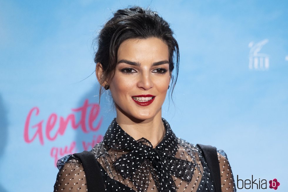 La actriz Clara Lago posando en la alfombra roja del estreno de la película 'Gente que viene y bah' con su melena recogida en un peinado messy.