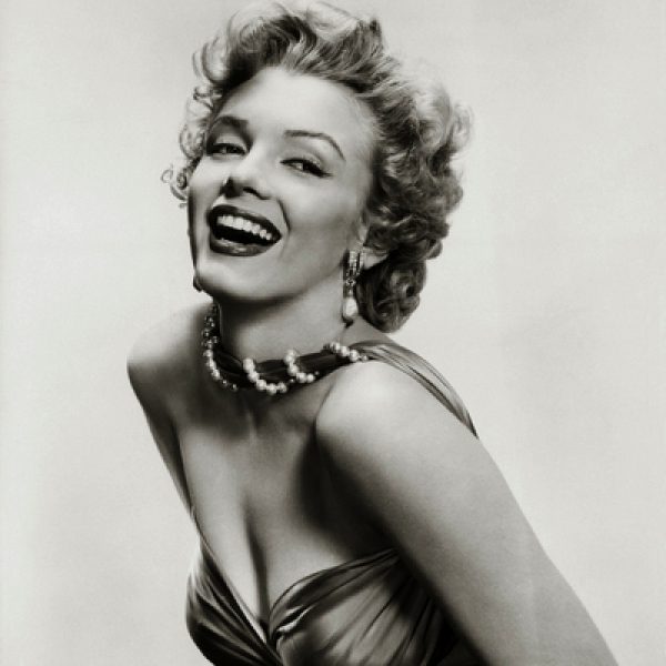 La actriz Marylin Monroe posa sonriente en esta imagen en blanco y negro.