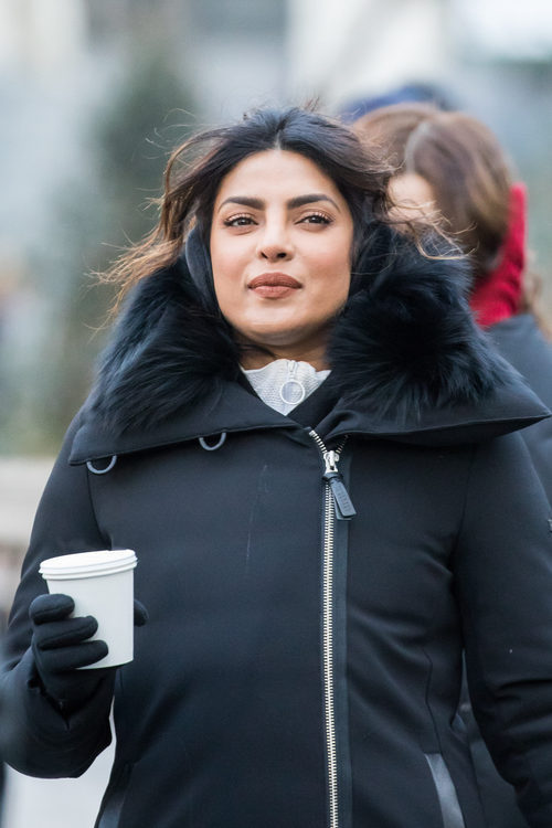 La actriz Priyanka Chopra con un make up que oculta el frío que hacía en Nueva York durante una jornada de rosaje de 'Quantico'.