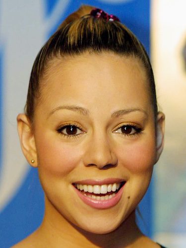Las finas cejas de la cantante además estaban teñidas de rubio, haciéndose todavía más imperceptibles. Por si eso fuera poco, su makeup tampoco ayudaba a mejorar el aspecto general del look y es que un vibrante colorete rosado en las manzanas de sus mejillas le daba a Carey un aspecto payasil. Desde luego este no fue uno de los muchos aciertos de su carrera.